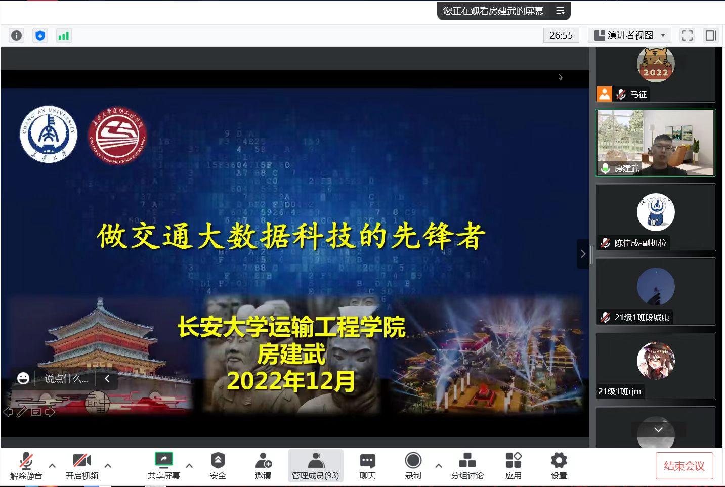 12月20日-12月23日,学院连续4日召开分学院线上专场宣讲会,特邀公路学院副院长张久鹏教授、汽车学院副院长邱兆文教授、交通工程系系主任邵海鹏教授、物流工程系高扬老师、车辆工程系李兆凯老师、交通运输系陈文强老师及大数据系房建武老师分别对相关专业进行了详细介绍,7位老师从学院及专业概况、专业发展历史、专业特色优势、师资队伍、科学研究、人才培养体系、课程体系、培养平台、学科竞赛、学生就业升学深造情况等多个维度,全方位地向同学们展示了各专业的独特风貌。各位老师还从未来时代发展的角度,充分解析交通领域的发展趋势和所面临的机遇挑战,从专业整合、学科深度交叉、技术转型、智能化、新能源等多个方面,分析各专业的科研创新方向及学习规划,对工科试验班同学给予很高期望的同时也提出了更高的要求。