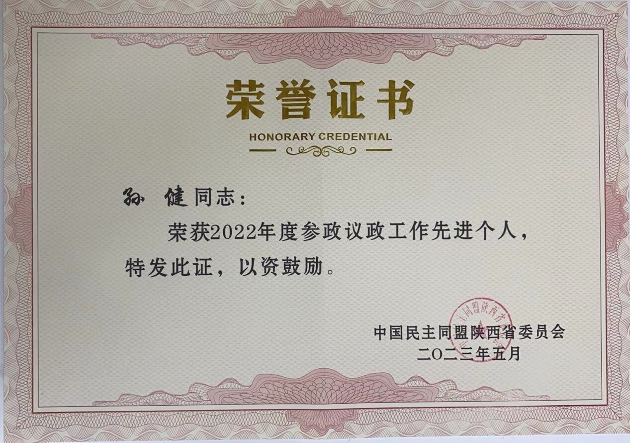 5月22日,中国民主同盟陕西省委召开2023年参政议政工作会议,表彰民盟陕西2022年度参政议政工作先进集体及先进个人。民盟陕西省委科技委员会副主任、yl23455永利集团执行院长孙健教授荣获“民盟陕西省委2022年度参政议政工作先进个人”称号。按会议安排,孙健作为先进个人代表以“传承党派基因,牢记历史使命,让参政议政成为一种信仰和习惯”为题向与会人员分享交流自身参政议政工作经验。