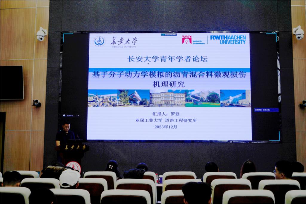 受邀参会的青年学者结合自身教育背景和研究方向,从城市道路交通网络拥堵、自动驾驶、黏土微观结构演化、沥青混合料微观损伤、环氧沥青老化行为等多个方面进行了专题学术报告。参会师生认真聆听学术报告,并就相关研究领域与青年学者展开深入交流,现场互动气氛热烈。