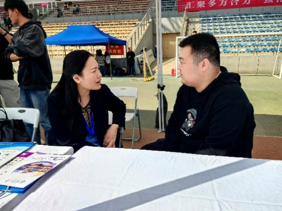 在双选会中,汤颖颖在访企拓岗现场询问毕业生就业情况,与学生深入交流了解学生就业意向,针对不同学生思想情况对其进行指导,为我院毕业生就业工作保驾护航。汤颖颖还与各企业深入沟通交流,了解企业的用人需求与招聘原则,开拓就业资源,推进校企合作,为我院毕业生做出更精准的就业指导。