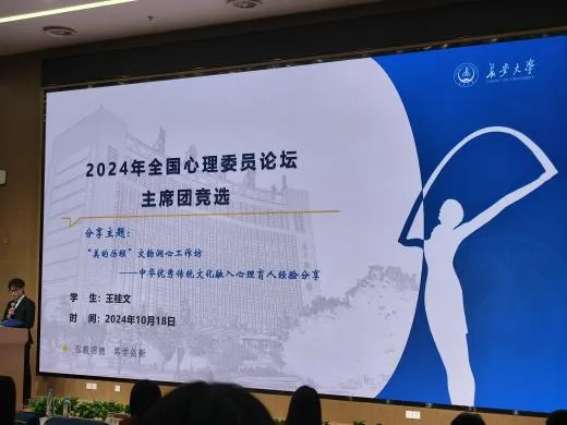 会上,王桂文以《“美的历程”文韵润心工作坊——中华优秀传统文化融入心理育人经验分享》为主题进行分享,从五育融合赋能心理健康教育、中华优秀传统文化融入学生心灵成长、四维协同加强心理健康工作实效等方面汇报学校及学院心理育人工作成效,将我院心理健康教育工作经验带到全国进行展示交流,赢得了在场评委老师与心理委员们的广泛好评。