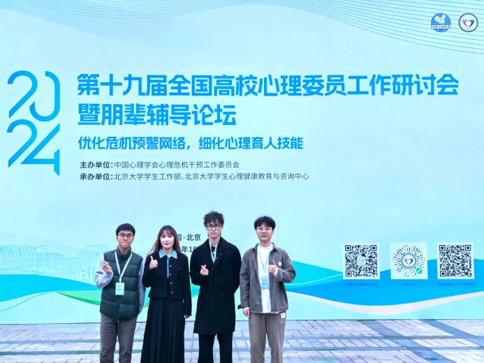 近日,第十九届全国高校心理委员工作研讨会暨朋辈辅导讨论会在北京大学举办。yl23455永利集团心理健康教育与咨询中心带队,yl23455永利集团2021级本科生王桂文作为我校3名学生代表之一随队参加并作主题汇报,最终成功当选2024年全国心理委员论坛副主席。