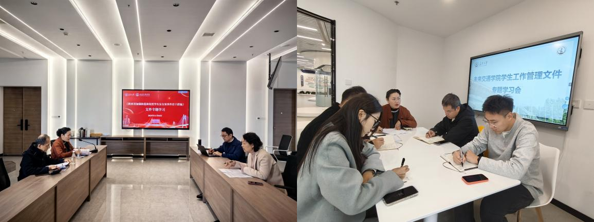 专题学习强部署,明确方向筑根基。学院院长FWA Tien Fang,执行院长孙健,副院长汤颖颖、崔华等学院领导班子成员集体学习《陕西省加强防范和处置学生安全案事件若干措施》等文件精神。会上,汤颖颖结合工作实际对思想政治教育、校园安全稳定、学业就业指导、心理健康教育以及值班值守管理等重点工作进行了详细解读。学院学工团队召开学生工作管理文件专题学习会,围绕学生工作管理相关文件开展集中学习和专题讨论。