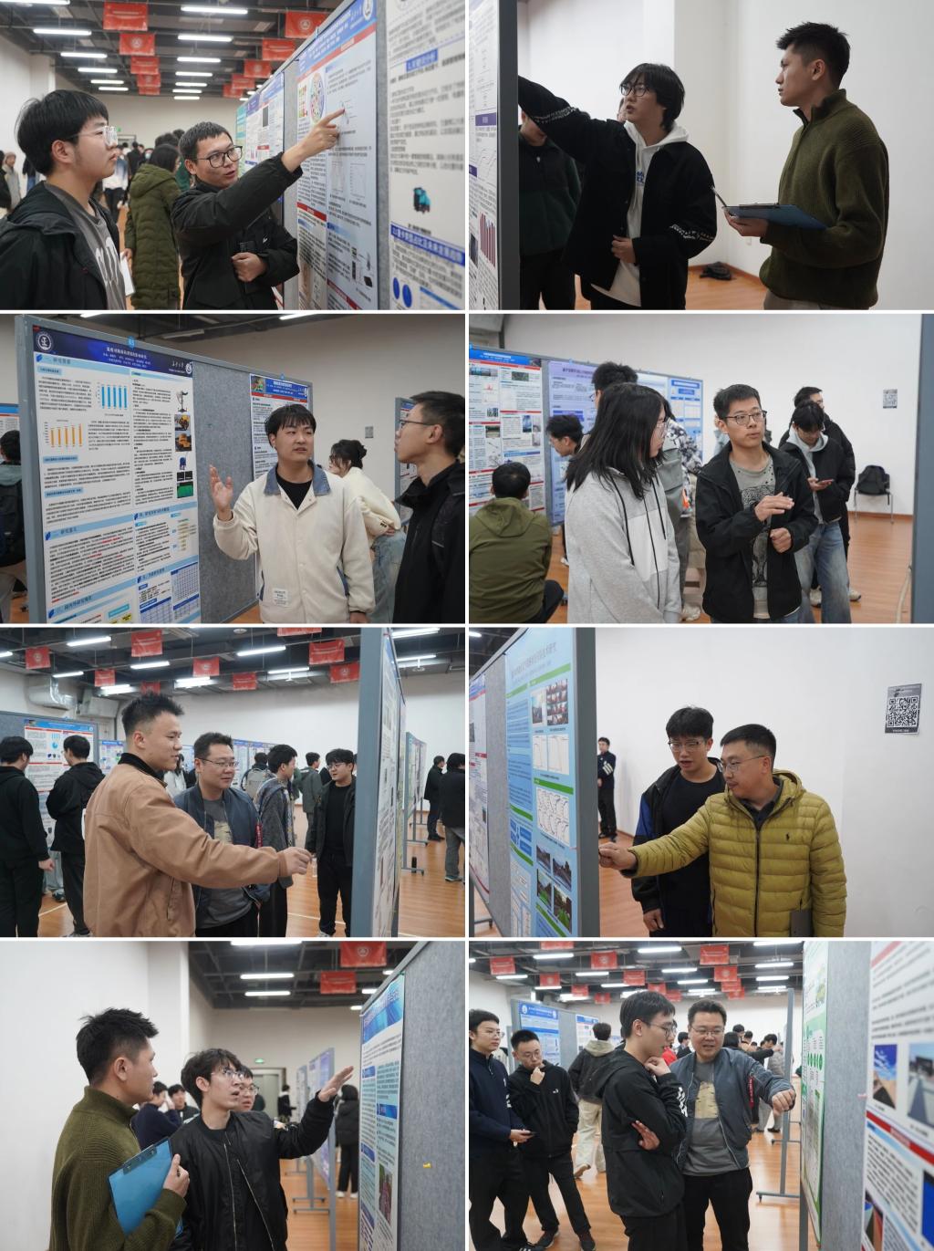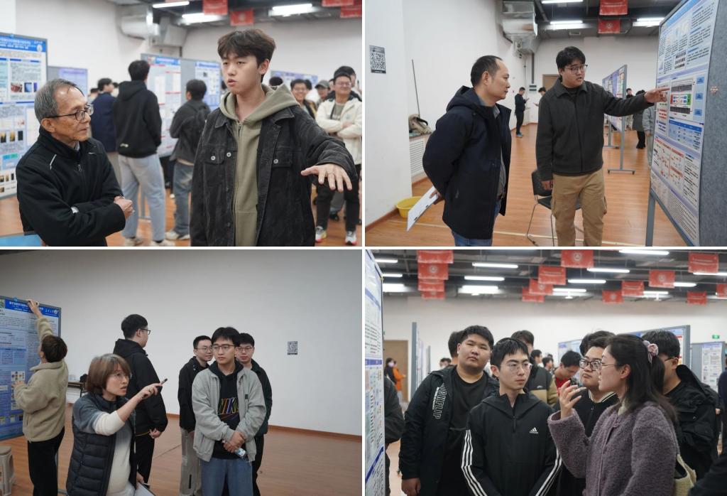 此外,学院其他年级同学分批到场观展,担任大众评审,从海报内容的创新性、完整性、设计美观度以及现场解说表现等多个维度进行线上评分。观展过程中,同学们积极与参展学长学姐交流探讨,既学习了海报制作与学术展示的技巧,也拓宽了对不同科研方向的认知,现场互动频繁,气氛热烈。