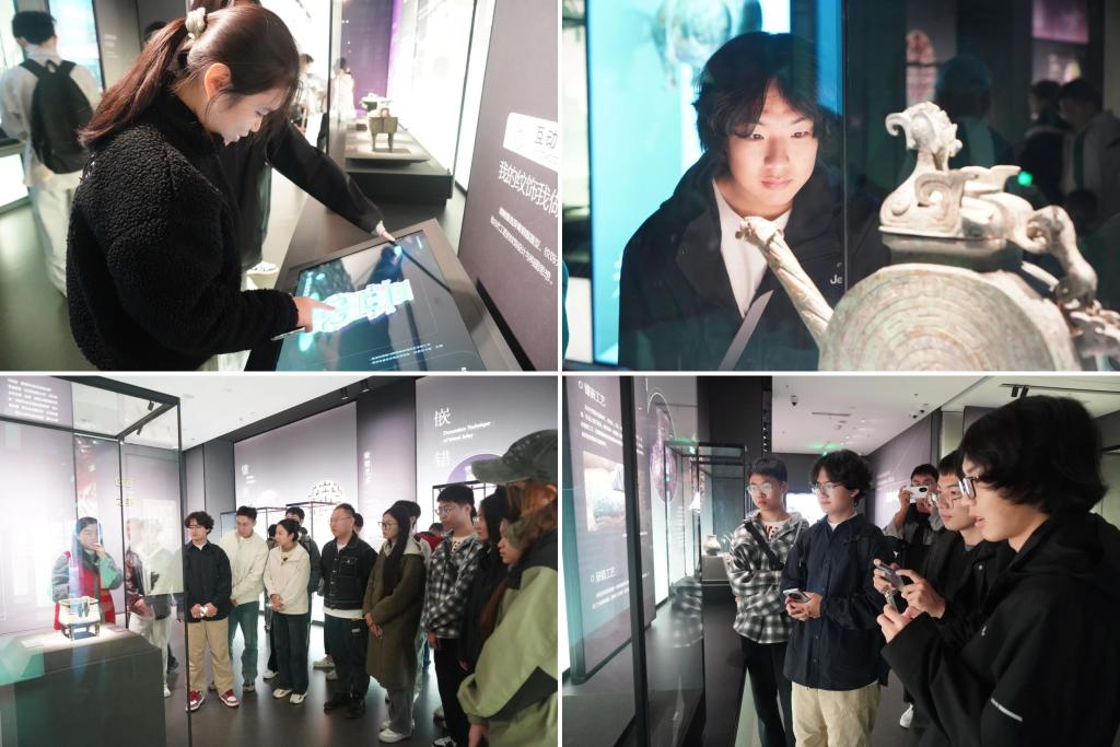 团队走进宝鸡青铜器博物院,讲解员向大家详细讲解当地周秦时期历史文化,精美的青铜器让同学们体验到了一场视觉盛宴,从泠泠作响的编钟,到精致小巧的发髻,再到大气磅礴的镇馆之宝——何尊,每一道纹理都藏着先民的生活密码,每一个古字都承载着早期文明的智慧光芒。同学们不仅知晓了青铜器的文化脉络,更在触摸历史温度的过程中,直观感受中华文明的源远流长与博大精深。