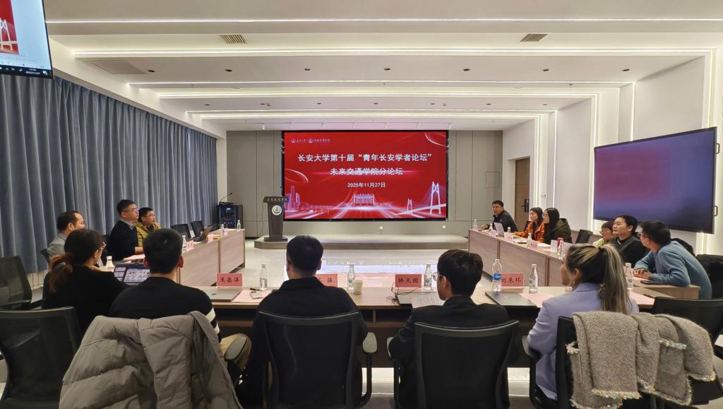 在学术报告与交流环节,受邀参会的青年学者结合自身教育经历和最新研究成果,聚焦交通领域前沿热点带来了精彩的专题报告。报告内容涵盖了自动驾驶人车交互建模与类人决策、多智能体分布式协同、道路基础设施循环经济应用、MaaS背景下的出行与物流服务、以及极端天气下的电动交通行为适应机制等多个前沿方向。参会师生认真聆听了学术报告,并就相关研究领域的关键技术路线与应用前景与青年学者展开了热烈探讨,现场互动频繁,学术氛围浓厚。