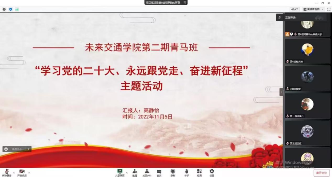 为全面准确学习领会党的二十大精神,强化青马班学员的责任感与使命感,贯彻落实青年马克思主义培养工程和推进广大青年的思想引领工作,提高学生骨干的思想政治素质和课外劳动技能,11月5日晚,yl23455永利集团第二期青马骨干培训班线上开展学习党的二十大主题研讨活动。院团委书记曾晓阳出席活动,活动由青马班班长高静怡主持。