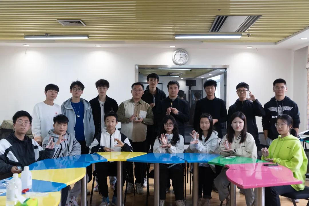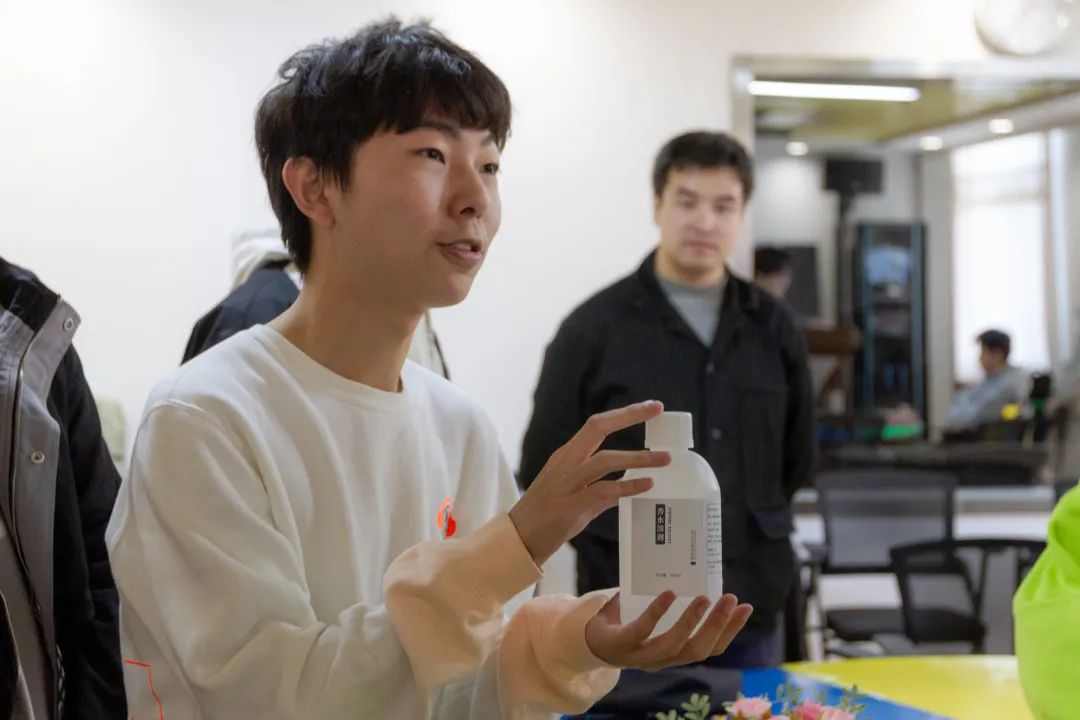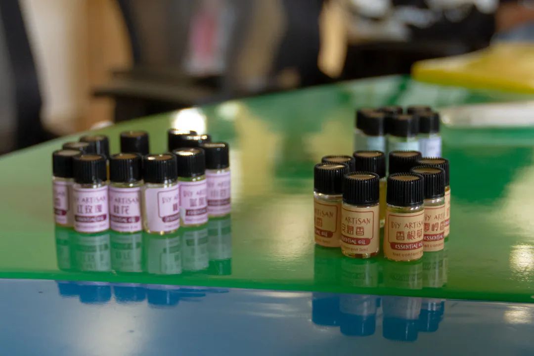 调香环节,徐富讲解了调香基本知识和实际操作步骤,并在现场示范了调香操作流程,强调了香料选择以及配比等关键注意事项,现场的老师和同学们踊跃参与,分工协作,气氛热烈,妙趣横生。在一片欢声笑语中,每一位“调香师”都在有条不紊地进行着精选、配比、滴液、搅拌等操作过程,大家尽情享受着创造的乐趣,调制着属于自己的“独家记忆”,一瓶瓶独特充满创意造型的香水尽现眼前。