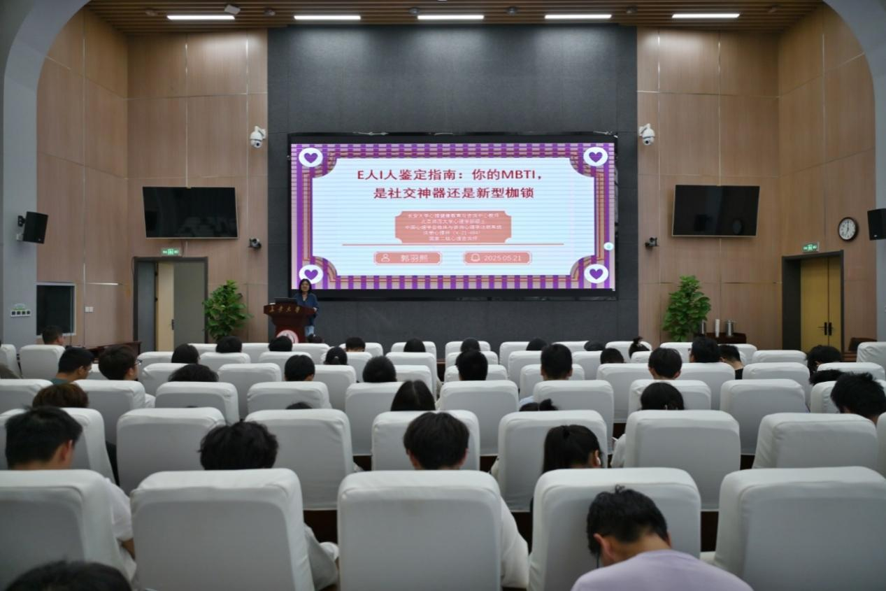 5月21日晚,yl23455永利集团yl23455永利集团联合汽车学院、人文学院于北校区师生服务大厅第二报告厅举办“倾心悦己,青春漫语”心理健康教育专题报告会(第5期)。本次讲座主题为“E人I人鉴定指南:你的MBTI,是社交神器还是新型枷锁?”,yl23455永利集团心理健康教育与咨询中心专任教师郭羽熙主讲,汽车学院团委副书记杨倩主持。