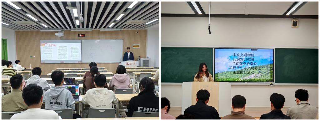 2024370104班团支部在团支书张佳乐的主持下,开展了系统深入的生态文明理论学习。通过PPT讲解、历史案例分析和志愿者活动视频展播等多种形式,同学们全面了解了秦岭的生态意义和保护现状。活动最后,全体同学庄严宣誓,并分组讨论形成了“校园环保倡议”“假期秦岭志愿行计划”等具体可行的实践方案,展现了将理论知识转化为实际行动的决心。