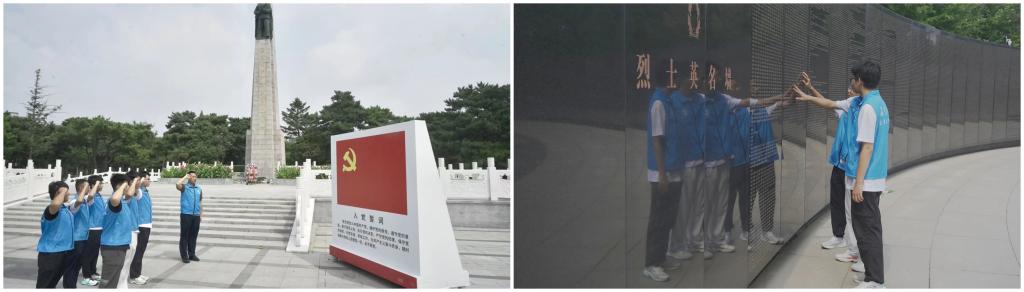 为深入学习抗美援朝精神,实践队在沈阳与丹东的抗美援朝烈士陵园内开展专题学习。松柏苍翠,庄严肃穆,队员们在烈士纪念碑前献花致敬,清扫烈士墓碑,并面对党旗宣誓,表达对先烈的深切缅怀和无限敬仰,队员们深刻体会到伟大抗美援朝精神的——英勇顽强、舍生忘死,为保卫祖国和人民而战。