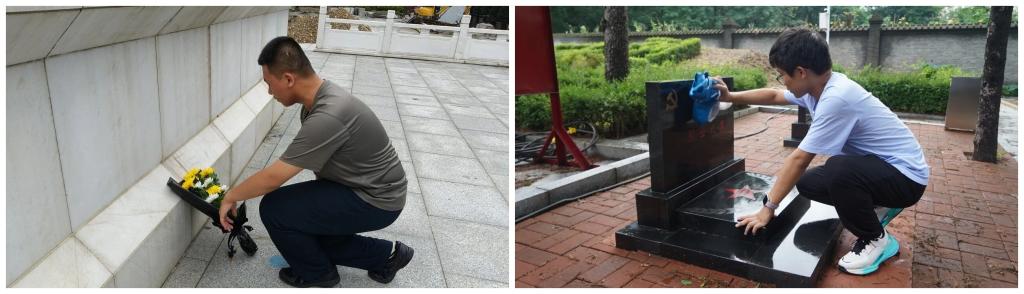 巍巍青山埋忠骨,赫赫功勋树丰碑。献花结束后,队员们对烈士墓碑进行了仔细的清扫。经过清扫与擦拭,整个墓园焕然一新,显得更加庄严肃穆。