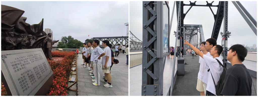 鸭绿江断桥遗址上,队员们凭栏远眺,仿佛穿越时空看到当年志愿军战士冒着炮火、踏着浮桥英勇渡江的场景。“雄赳赳,气昂昂,跨过鸭绿江” 的豪迈歌声仿佛在耳畔回响,大家深刻体会到,这场战争不仅保卫了新中国的安全,更铸就了中华民族的精神丰碑。此外,实践队还登上543导弹护卫舰(丹东舰),通过参观舰艇装备、聆听舰史介绍,进一步了解了其在保卫海防、维护国家安全中的重要作用,国防意识与爱国情怀进一步提升,也让大家更加珍惜当下来之不易的和平生活。