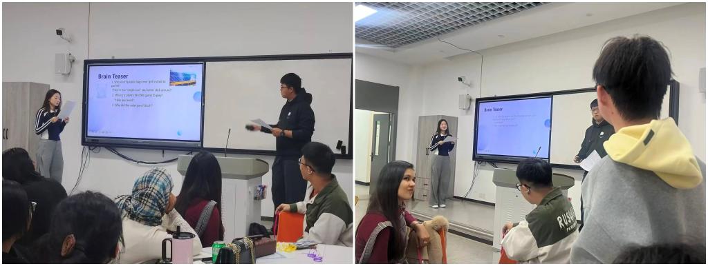 活动伊始,第一环节的有关环保主题的“Brain Teaser”引燃全场热情。巧妙的问题设计引发阵阵思辨,同学们踊跃参与,积极抢答,现场变为了环保知识竞技场。这场趣味挑战不仅是一次语言实践,更将环保理念潜移默化地植入每位参与者的心中。