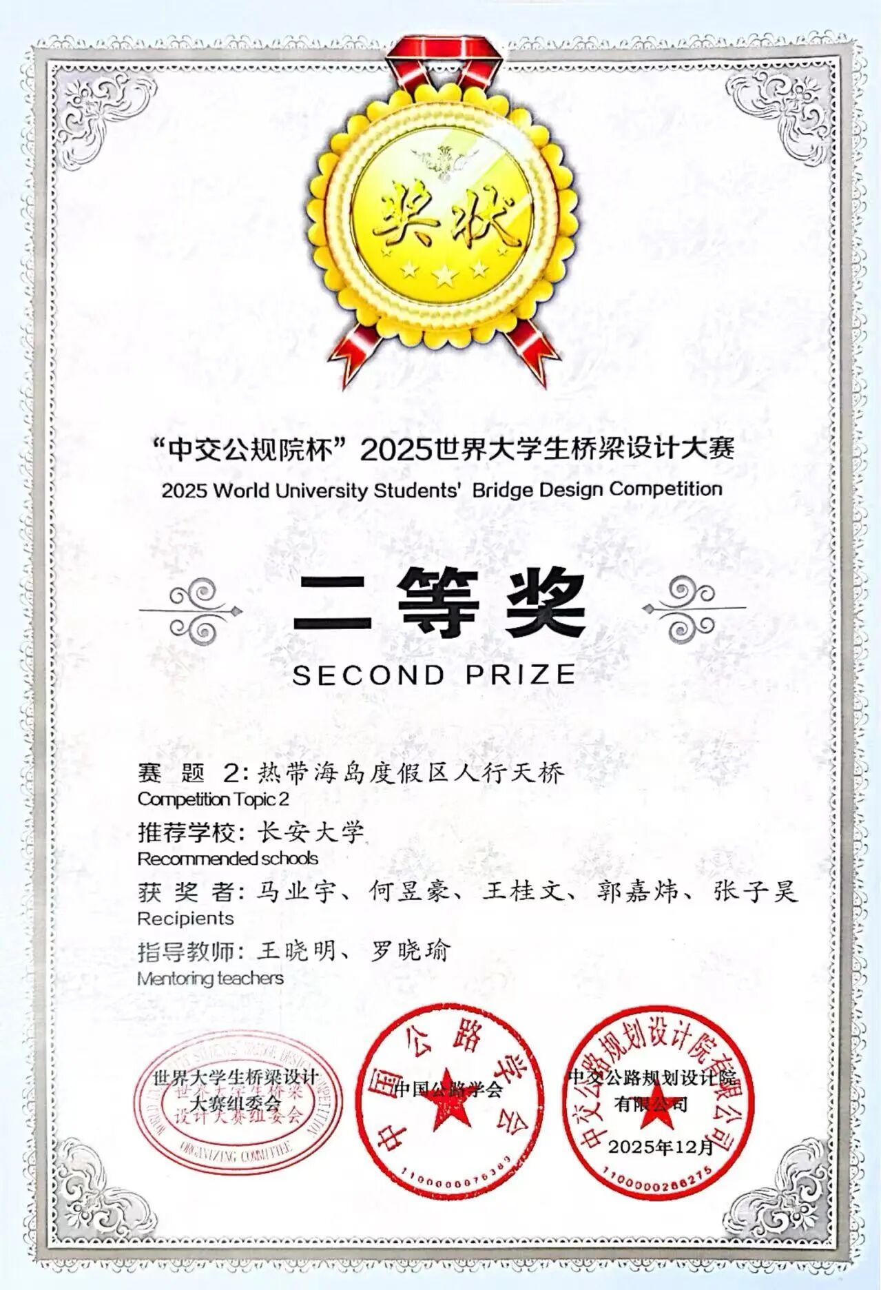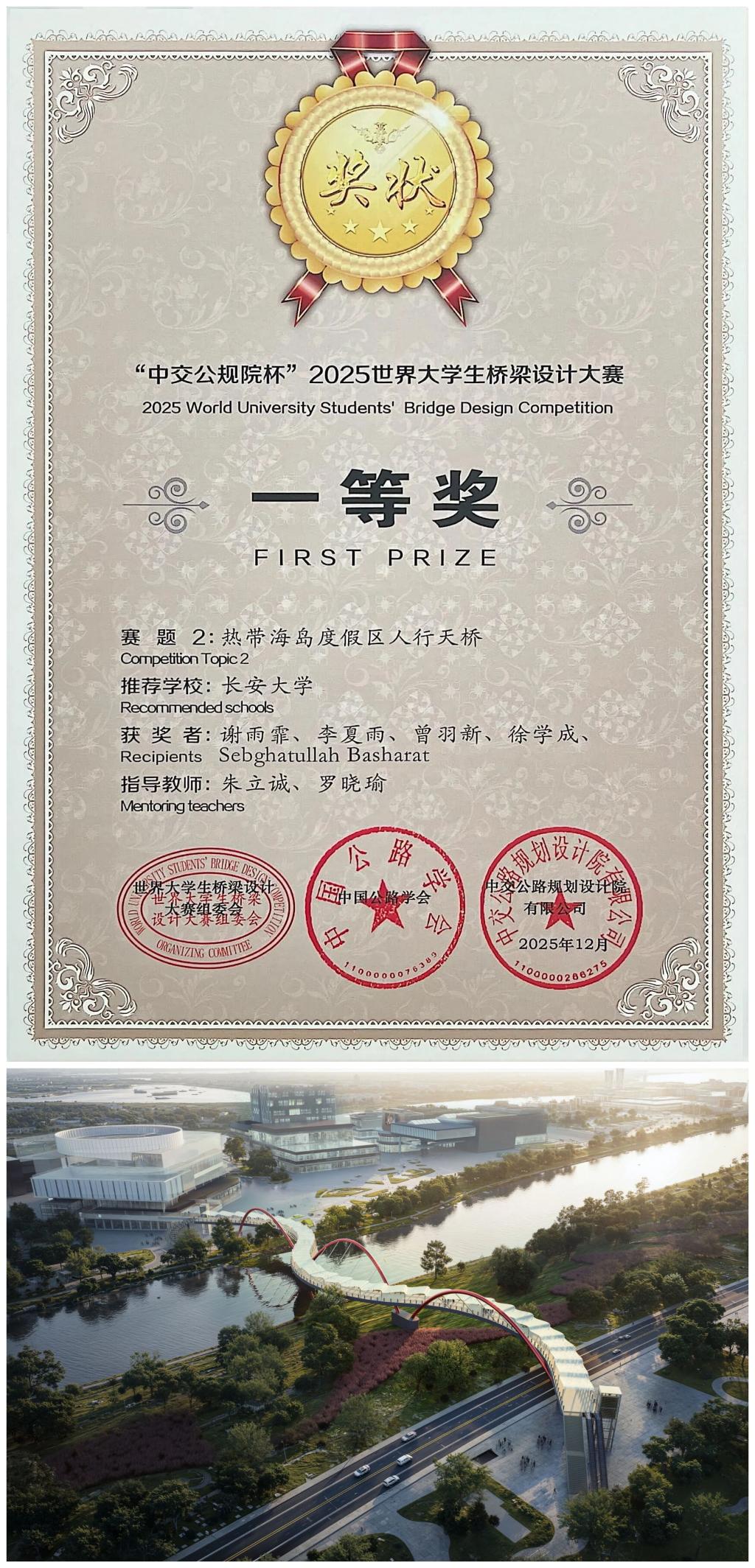近日,“中交公规院杯”2025世界大学生桥梁设计大赛获奖作品名单正式公布,yl23455永利集团参赛队伍在本届国际赛事中表现突出,获得一等奖1项、二等奖1项,实现学院在该赛事的新突破。