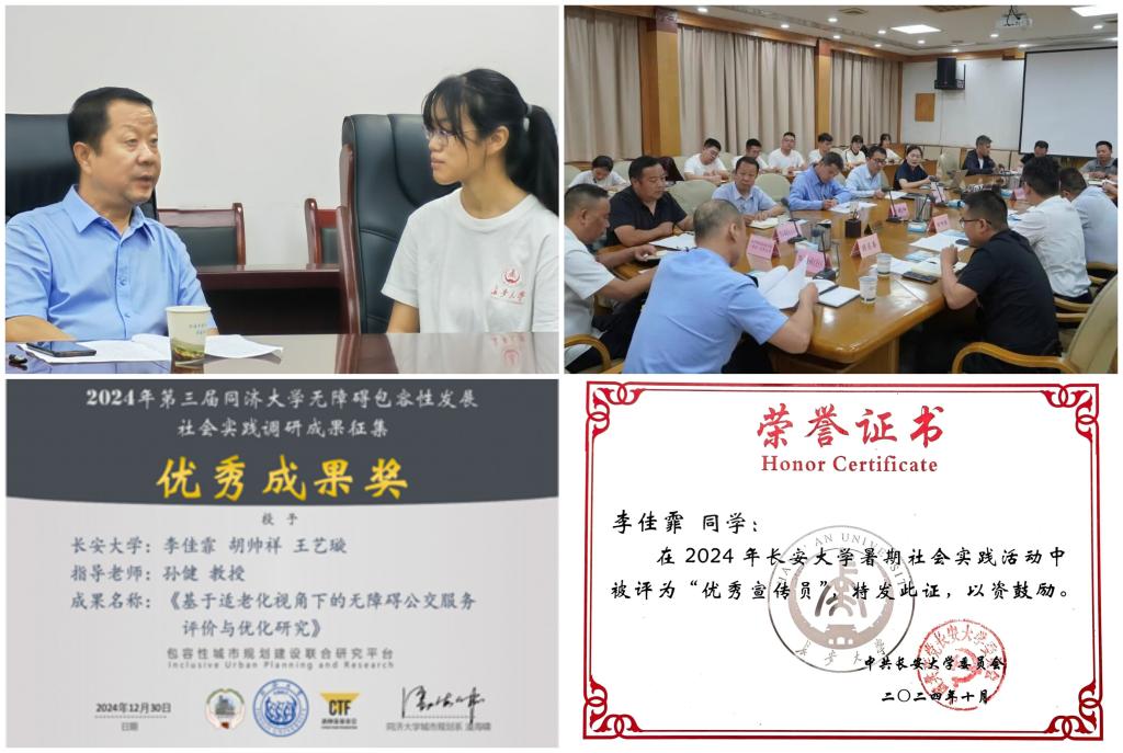 围绕学业专业发展,她带队前往汉中开展专业主题实践,聚焦老城区交通拥堵等现实问题,凝练实践成果,成果报告获共青团汉中市委和汉中市汉台区负责人等主要领导批示。把辛勤付出转换为成长收获,是李佳霏一直坚信的奋斗理念。结合多次实践调研,她撰写的论文成果在同济大学无障碍包容性发展社会实践调研成果征集大赛中获得一等奖,在第二十届全国大学生交通运输科技大赛中获省级三等奖。