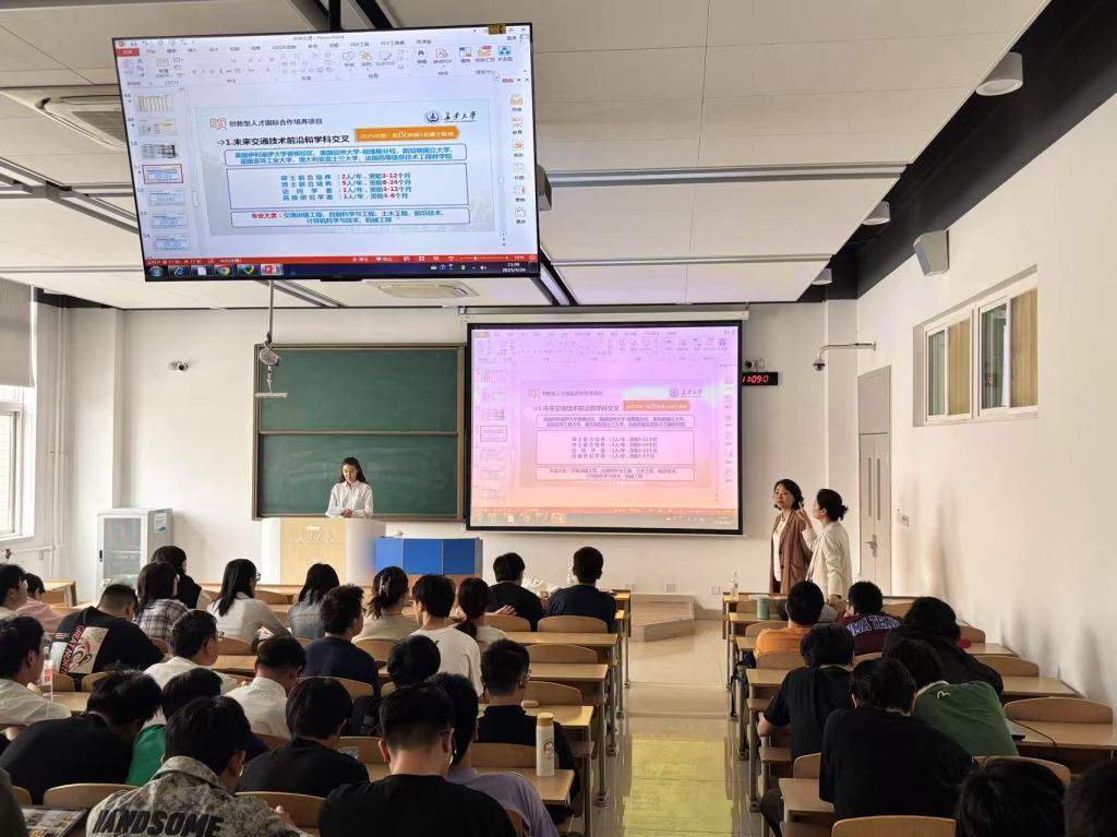 为了落细落好未来交通领域领军创新人才的办学目标,提升学院人才培养的国际化水平,yl23455永利集团于4月26日上午10时在渭水校区WH1101教室成功举办中外联合培养项目宣讲会。活动特邀国际合作交流处副处长周珍珍、合作办学项目管理科副科长张靖雯担任主讲嘉宾,指导学生国际化培养工作。学院副院长崔华教授主持活动,2024级研究生、2025级研究生(大四推免生)、2023级和2024级华为班学生现场参会。