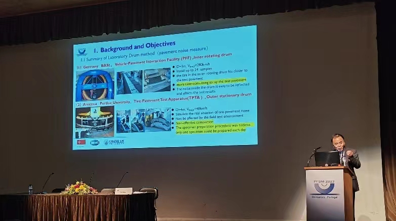 会议期间,韩森教授作了题为“室内高速轮胎 - 沥青路面相互作用噪声测试方法的研究”的学术报告。针对当前路面噪声污染问题,韩教授提出了一种新的室内测试方法,为缓解城市噪声污染提供了新的解决思路。褚龙佳副教授作了题为“路面材料导热系数的新型实验-数值确定方法”的学术报告,报告从“路面材料热导率的实验数值测定”和“多孔路面的透水能力测量”两个方面,提出了一系列新的测试方法和研究成果,将对路面材料的研究和设计发挥重要指导意义。